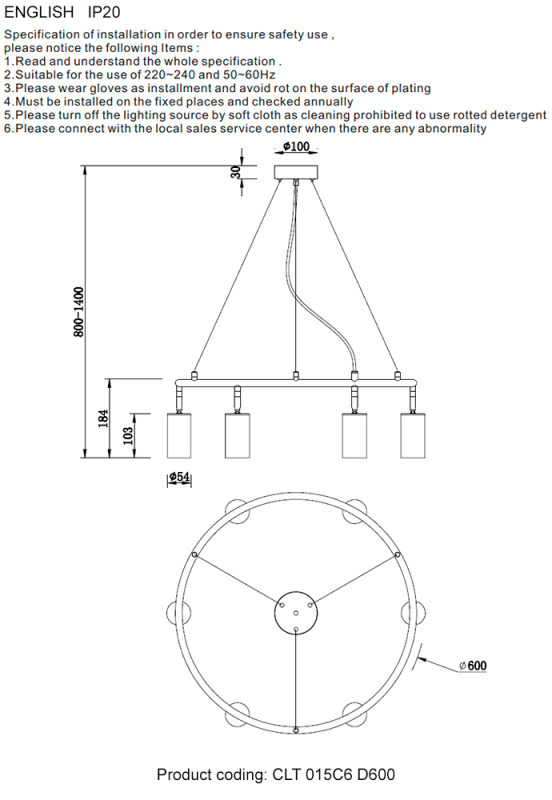 Светильник подвесной Crystal Lux CLT 015C6 D600 BL-GO – идеальное решение для вашего интерьера. Дизайн "Современный" сочетает функциональность и элегантность. Высокая степень защиты IP гарантирует его надежность и долгий срок службы даже в условиях высокой влажности. Производитель , рекомендует подобрать энергосберегающие лампы для создания комфортного освещения. Стоимость светильника: 15 400 руб. Возможна доставка в город Казань.