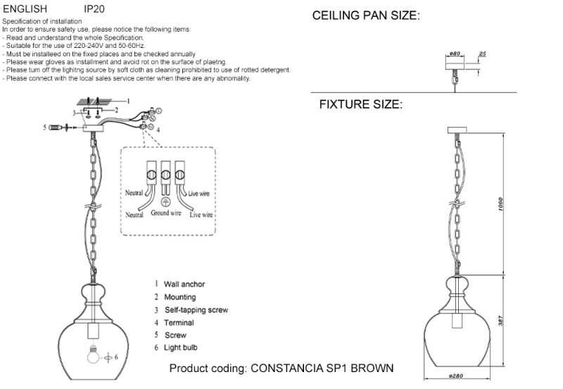 Светильник подвесной Crystal Lux CONSTANCIA SP1 BROWN – идеальное решение для вашего интерьера. Дизайн "Лофт" сочетает функциональность и элегантность. Высокая степень защиты IP гарантирует его надежность и долгий срок службы даже в условиях высокой влажности. Производитель , рекомендует подобрать энергосберегающие лампы для создания комфортного освещения. Стоимость светильника: 10 700 руб. Возможна доставка в город Казань.